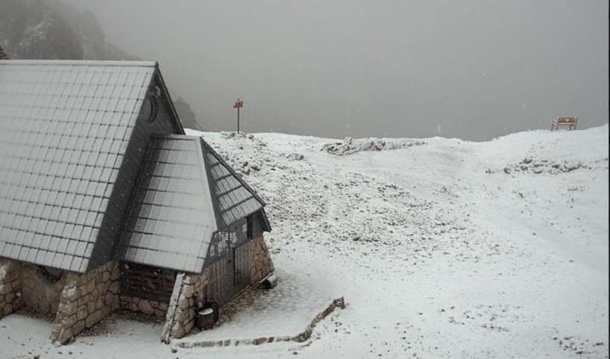 Nešto pre 16 sati danas je na Kredarici kiša prešla u sneg, a snežna linija bi se u večernjim satima mogla spustiti i do 2.100 metara nadmorske visine.