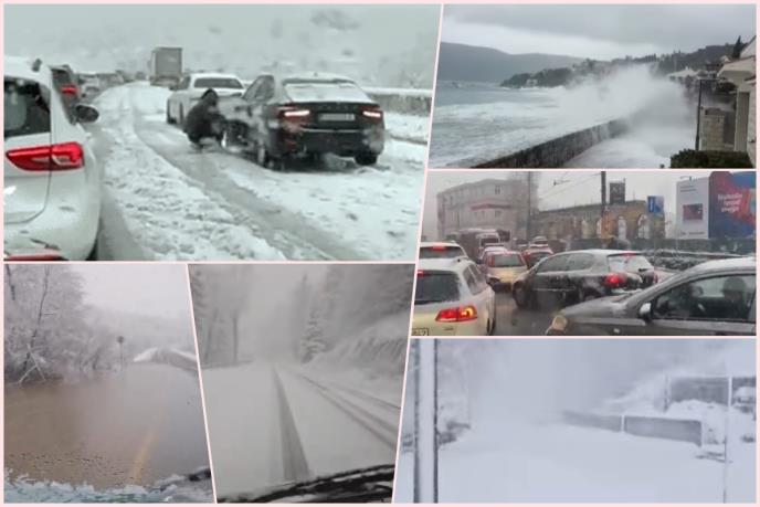 Zbog olujnog vetra i snega u delovima Hrvatske putevi su zatrpani i nema struje, a u Šibeniku plima poplavila puteve i kafiće.