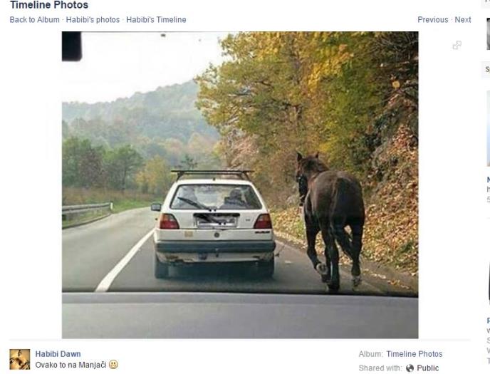 Putnici koji su se nedavno vozili lokalnim putem kod Banja Luke mogli su da vide neverovatan prizor jer je vlasnik belog golfa vezao konja za automobil i tako se kretao ulicom.