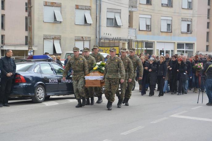 SARAJEVO - Članovi porodice, brojni prijatelji, poznanici i kolege, pripadnici Oružanih snaga Bosne i Hercegovine, okupili su se ispred zgrade gde je rođen ubijeni Nedeljko Radić u Nevesinju, odakle su se uputili na gradsko groblje, gde je obavljen poslednji ispraćaj i sahrana ovog 34-godišnjeg vojnika OSBiH.