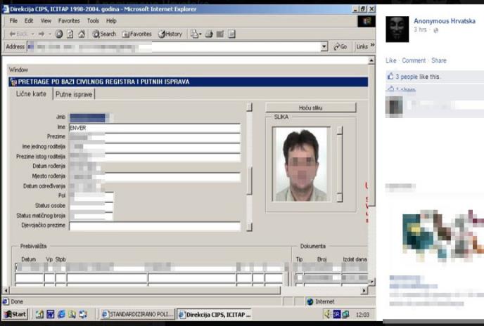 Do sada su objavili podatke skoro 80 osoba. Na osnovu fotografija pretpostavlja se da su Anonimusi "upali" u bazu podataka Agencija za identifikacione dokumente, evidenciju i razmjenu podataka Bosne i Hercegovine (IDDEEA).