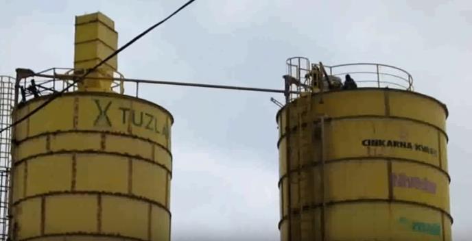 Četvorica radnika "Tuzla kvarc", koji štrajkuju glađu već 18 dana, juče su se popeli na silos, koji se nalazi u krugu fabrike, i pretili da će počiniti samoubistvo, izjavio je predsednik sindikata u toj kompaniji Senad Mehanović.