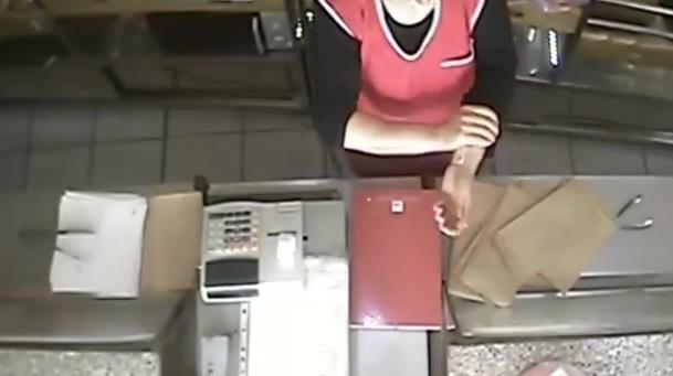 Na prvom snimku vidi je otišla da razmeni novac gazdi iza leđa i gura novac pod levi rukav. Na drugom videu se vidi da prilikom vraćanja kusura zagrće rukav i otkriva novac ispod njega.