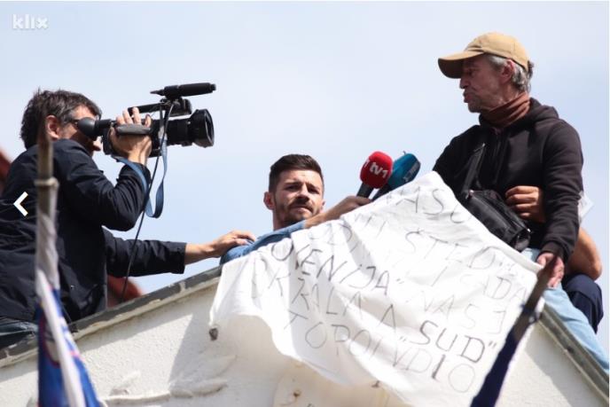 Čovek je razgovarao i s novinarskim ekipama koje su se popele na krov, a potom su se popeli i policijski službenici koji su ga priveli.