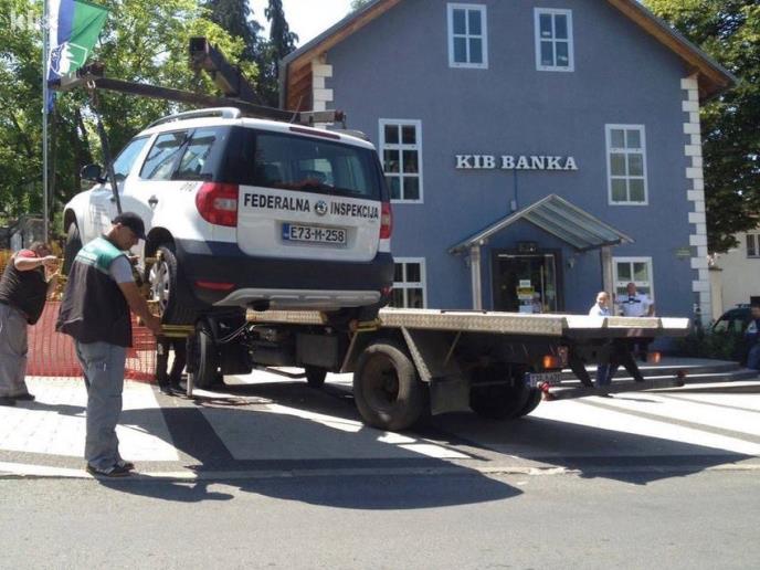 Nesvakidašnja situacija desila se danas u Cazinu kada su zaposleni JKP Parking servis Cazin specijalnom dizalicom uklonili automobil Federalne inspekcije koji je bio nepropisno parkiran