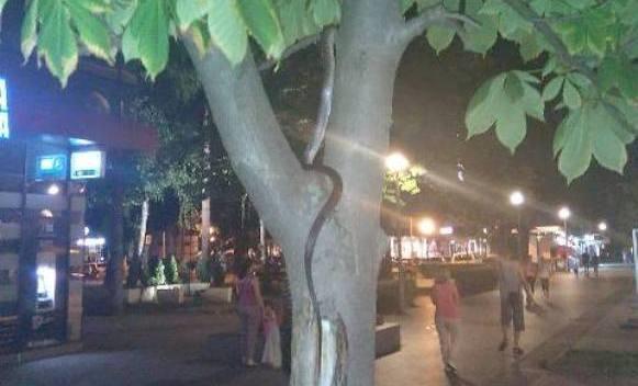Nije mogao daveruje kada je vide gmizavca kako visu sa drveta u delu grada kojim svakodnevno prolazi veliki broj građana.