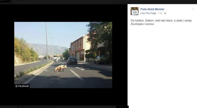 Životinjsko carstvo lagano se širi Mostarom, pošto su pre neki dan ulovljeni lisica i konj na mostarskim ulicama , ovoga puta pred Mostarce je izletela svinja.