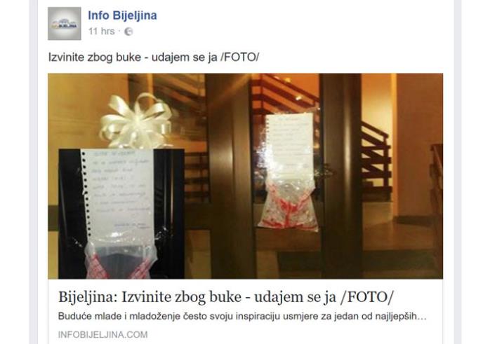Na ulazu u jednu od bijeljinskih zgrada, zabeležena je krajnje originalna ideja, gde je buduća mlada na skroman, ali neobičan i nesvakidašnji način svoje komšije obavestila o udaji.