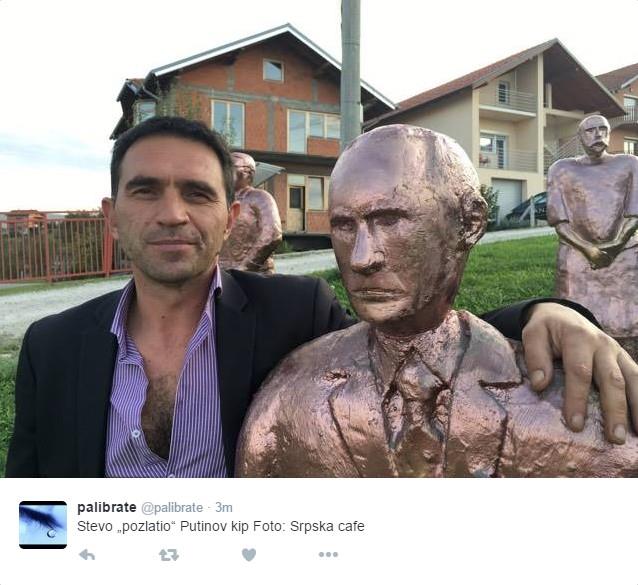 "Ovaj kip od gline, čije pravljenje sam završio polovinom godine, sada je plastificiran i obojen bakarnom bojom. Neki kažu i da sam ga pozlatio. A kako i ne bi kada je jedino Putin podržao ovaj naš referendum kao jedno od glavnih obeležja demokratije", kaže Selak za SrpskaCafe i dodaje da je Putinu povećao glavu za oko dva milimetra.