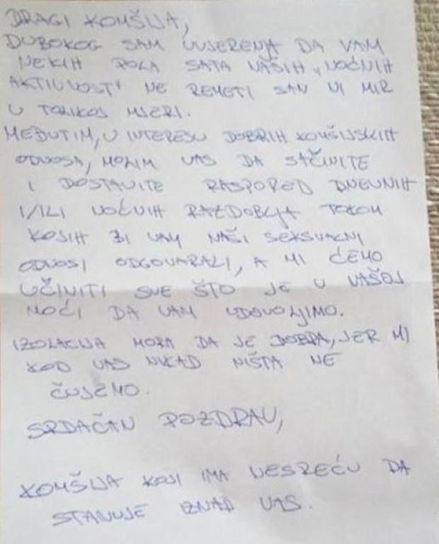 Pismo je završio sa jednim "Srdačan pozdrav", a mi se nadamo da su našli zajednički jezik i odgovarajući termin, te da će svako uživati u svojoj slobodi i miru.