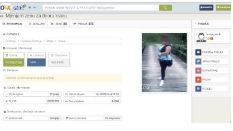 Jedan korisnik ovog servisa je pod imenom "avdijazulic" objavio oglas kako "menja ženu za kravu". Pri tome je objavio i fotografiju žene. U opisu oglasa je navedeno da "ženu menja za dobru kravu, jer nije u mogućnosti da kravu kupi deci", kao i da ga žena godinama vara. Uz sve to, objavio je i njeno ime.
