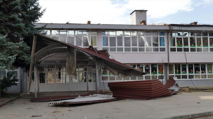Oko 13 sati vetar je danas poput papira oduvao limeni krov sa osnovne škole. Srećom, niko nije bio u blizini a i neradni je dan pa nije bilo povređenih.