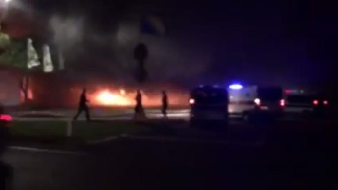 Tržni centar Bingo još uvek je u plamenu, a veliki broj vatrogasnih vozila je na mestu događaja u pokušaju da obuzda ogromnu vatrenu stihiju.