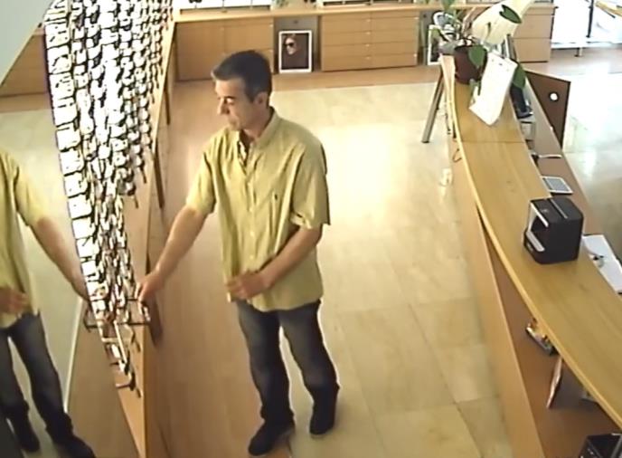 Na videu se vidi kako muškarac kratko razgleda, a potom i krade naočare.