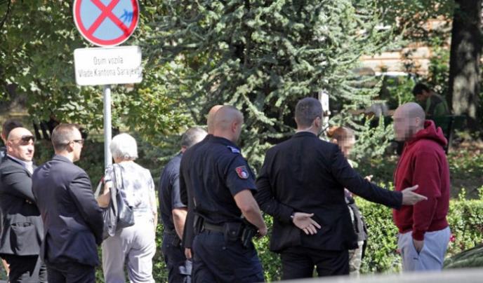 Kada su se spustili i krenuli prema FIS-u, telohranitelji su ih presreli i blokirali im prolaz. Onda su pozvali policiju i došle su dve patrole. Ispred zgrade Kantona Sarajevo bilo je nekoliko policijskih službenika, telohranitelji, devojka i njen prijatelj.