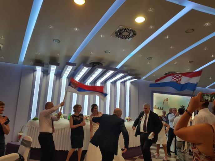 Svatovi su po tradiciji nosili zastave, ali ovog puta na jednom mestu su bile i hrvatska i srpska uz oduševljenje svih prisutnih.