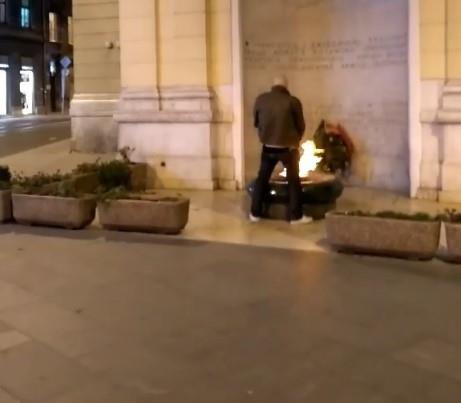Na snimku koji kruži društvenim mrežama vidi se pijani stariji muškarac kako urinira iznad takozvane Večne vatre.