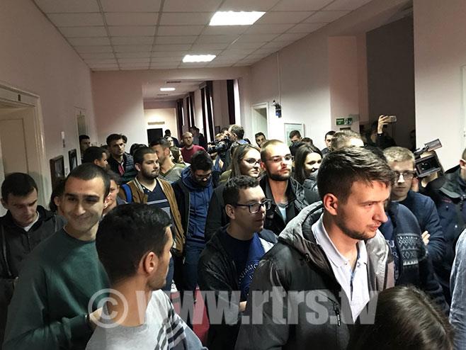 BANJALUKA - Oko 150 studenata Univerziteta u Banjaluci ušlo je u zgradu Rektorata, zahtevajući da se do 16 časova sastanu sa rukovodstvom Univerziteta kako bi im uručili svojih 18 zahteva.