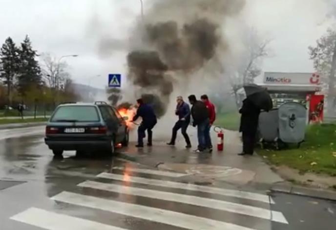 Automobil marke "folksvagen pasat" zapalio se u vožnji. Nije poznato šta je uzrok požara, ali se prethodno čula jaka eksplozija.