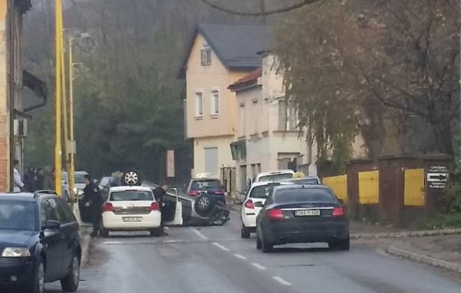 (FOTO) STRAVIČNA SCENA U TUZLI: Kolima udario u banderu, pa se prevrnuo na krov!