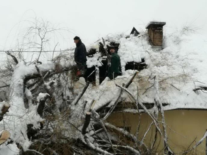 Pripadnici Civilne zaštite, vatrogasci i policajci sjatili su se u sarajevsko naselje Vrace, gde je kasno sinoć drvo pod težinom snega palo pravo na kuću.