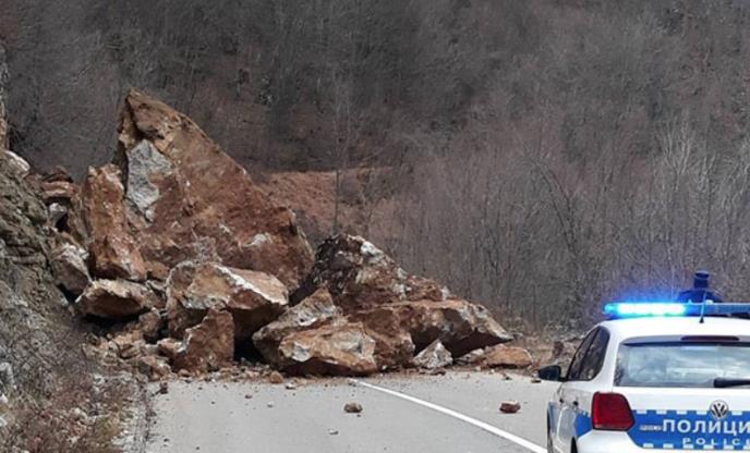 Na izlazu iz Kneževa prema Travniku stena se odronila i pala na put.