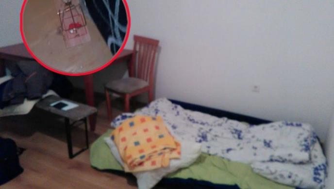 Smešten je u sobu u kojoj je bio samo jedan dušek, koji je morao da deli sa još jednom osobom. U sobi je bilo i drugih "podstanara", jer su po ćoškovima postavljene mišolovke. Okolo su bile i neke posude sa štrokavom vodom.