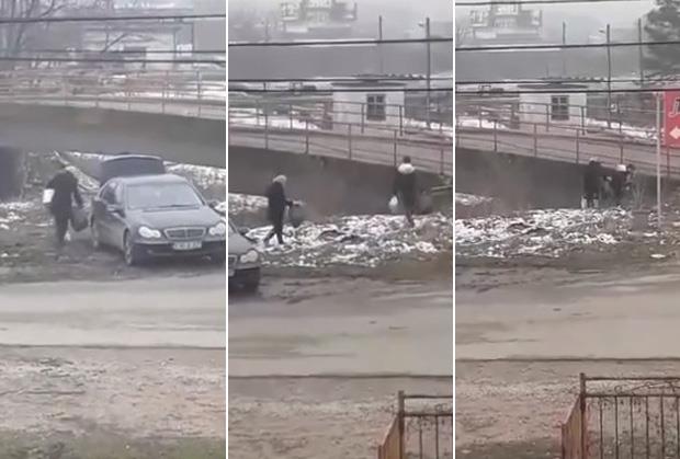Na snimku se vidi automobil marke "mercedes" parkiran na lokaciji Modračkog jezera, uz obalu reke Spreče. Iz tog putničkog automobila zatim izlaze muškarac i žena, zatim uzimaju veću količinu smeća i spuštaju se do reke, pa bacaju đubre u nju.