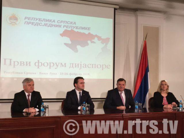 U Banjaluci je, pod pokroviteljstvom predsednika Republike Srpske Milorada Dodika, održan Prvi forum dijaspore, koji je okupio 100 učesnika iz više od 20 zemalja. Cilj je jačanje privredne i kulturno-naučne saradnje između Srpske i srpskog naroda u rasejanju.