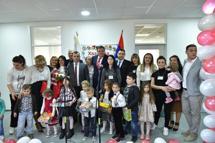 Zajedno sa načelnikom opštine Srebrenica Mladenom Grujičićem vrtić i halu otvorili su ministar odbrane Srbije Aleksandar Vulin i predsednik Republike Srpske Milorad Dodik.