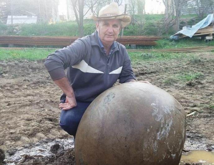Juče je meštanin Hilmo Ćatić iz mesta Paravci, prilikom radova u blizini kuće, pronašao kamenu kuglu prečnika oko 70 centimetara.