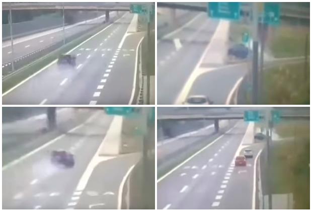 U videu koji se pojavio na internetu snimljen je trenutak kada je vozilo udarilo u metalni stub.