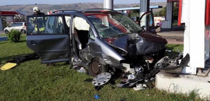 Vozilo folksvagen turan se oko 8 časova sudarilo s fordom, da bi potom udarilo u betonski stub na benzinskoj pumpi.