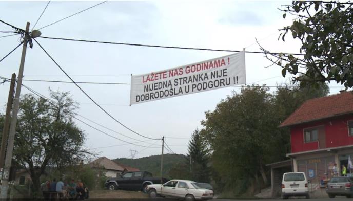Meštani tog sela nadomak sarajeva okačili su i transparent u centru mesta na kom piše: " "Lažete nam godinama. Nijedna stranka nije dobrodošla u Podgoru".