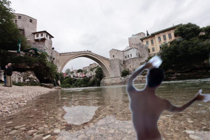 Potpuno go muškarac iznenadio je sinoć mnoge građane na kružnom toku u Mostaru.