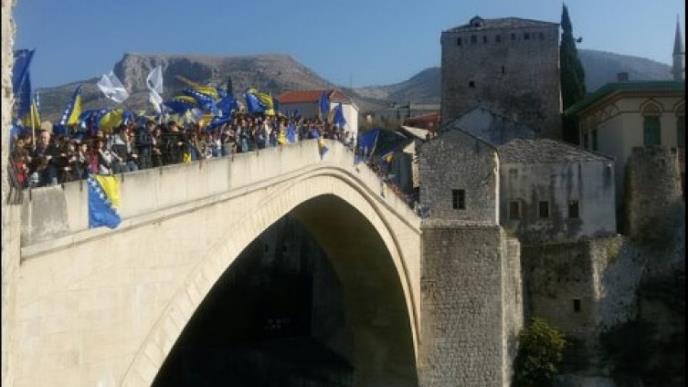 Tačno u 10.16 sati, uz zvuk sirene i skokom bez aplauza, obeleženo je 25 godina od događaja koji je šokirao Mostar i ceo svet.
