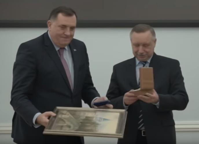 Predsedavajući Predsedništva BiH, Milorad Dodik, odlikovan je u Sankt Peterburgu, značkom zasluga za ovaj grad. Čestitajući pobedu na izborima, odlikovanje mu je uručio vršilac dužnosti gubernatora Aleksandar Beglov.