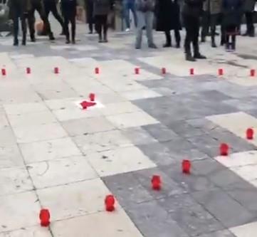 Na platou ispred fakulteta postavljene su sveće u obliku srca u čijem centru je stajao plišani medved, a građani su raširili veliki transparent na kojem je pisalo "Pravda za Davida i Dženana".