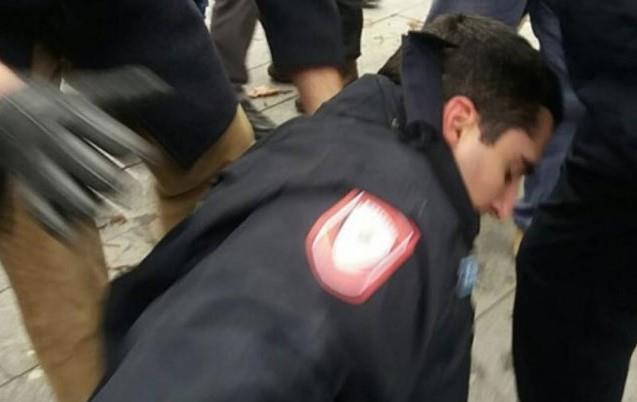 Na snimku se jasno vidi kako muškarac prilazi već oborenom policajcu i brutalno ga udara nogom u leđa.