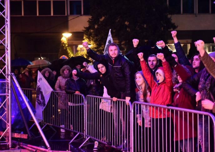 Posle održanog skupa na Trgu Krajine, oni su neko vreme šetali ulicama Banjaluke, a na kraju su otišli na parking ispred Muzeja savremene umetnosti gde je postavljena bina za zakazane koncerte povodom novogodišnjih praznika.