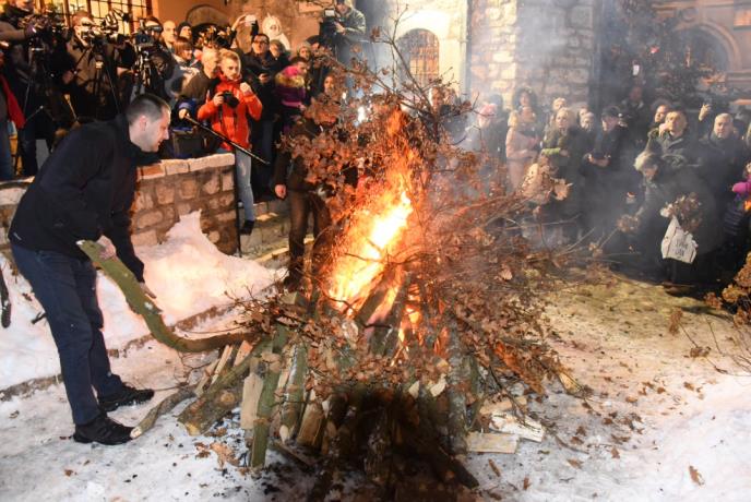 Pravoslavni vernici večeras su u dvorištu Stare pravoslavne crkve na Baščaršiji u Sarajevu zapalili badnjak čime su označili početak proslave Badnje večeri i najavili dolazak Božića.