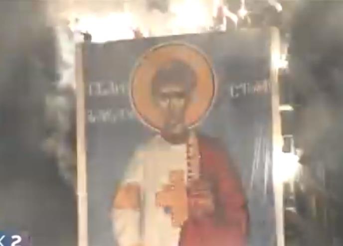 ZABLISTALA IKONA SVETOG ARHIĐAKONA STEFANA U FOČI: Vinula se 30 metara u visinu! Delije se spektakularnom BAKLJADOM i vatrometom setile HEROJA GAGOVIĆA! (VIDEO)