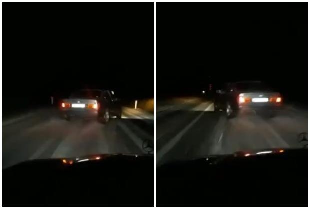 Na snimku se vidi automobil koji noću na klizavom putu krivuda levo-desno.