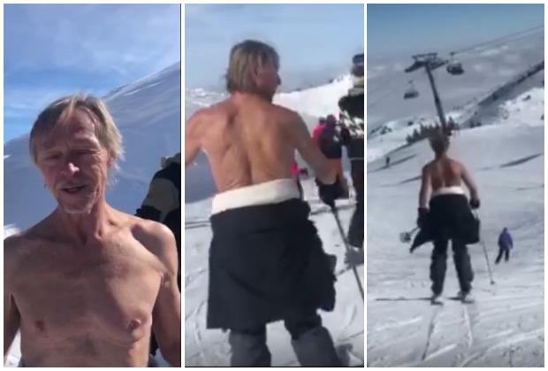 Među velikim brojem skijaša izdvaja se jedan koji bez obzira na vremenske uslove skija - go do pojasa.