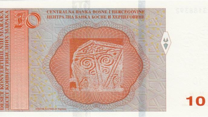 Naličje novčanice u BiH od 10 konvertibilnih maraka (KM) ilustrovano je stećkom, ali je pogrešno navedeno da ovaj nadgrobni spomenik potiče iz nekropole Radimlja kod Stoca, umesto iz KriževićA kod Olova.