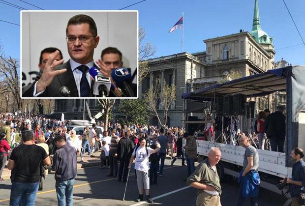 Prema Jeremiću, navodi Radio Sarajevo, Vučić danas nije smeo da izađe iz ove zgrade i to će ga koštati mesta na Andricevom vencu. Radio je na svom sajtu objavio i Jeremićev tvit u kojem je on noćas, sat posle ponoći,velikim slovima poručuje:"Do Uskrsa".