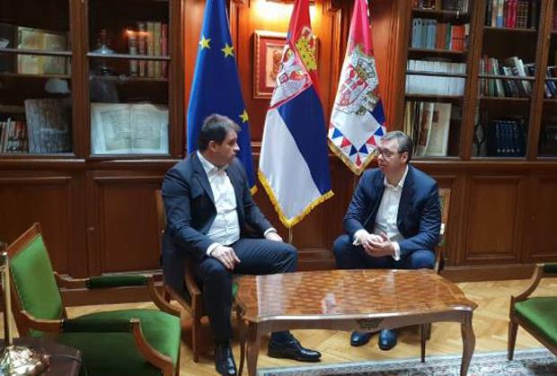 Predsednik Srbije Aleksandar Vučić jutros je u svom kabinetu primio predsednika Srpske demokratske stranke Vukotu Govedaricu, prije odlaska u Mostar, gdje prisustvuje otvaranju sajma privrede u tom gradu.