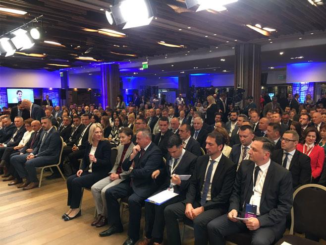 10.15 - Izvršni direktor Udruženja ekonomista Republike Srpske SWOT Saša Grabovac na početku govora se zahvalio predsednici Srpske Željki Cvijanović i predsjedavajućem Predsjedništva Miloradu Dodiku na pokroviteljstvu.