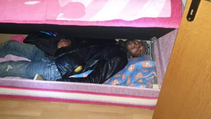 Migrant, koji je upao u kuću, uopšte nije spavao na kauču, već u njemu. Sudeći po fotografiji koja je osvanula na društvenim mrežama, kauč je dopola rasklopio i onda se samo smestio i zaspao.