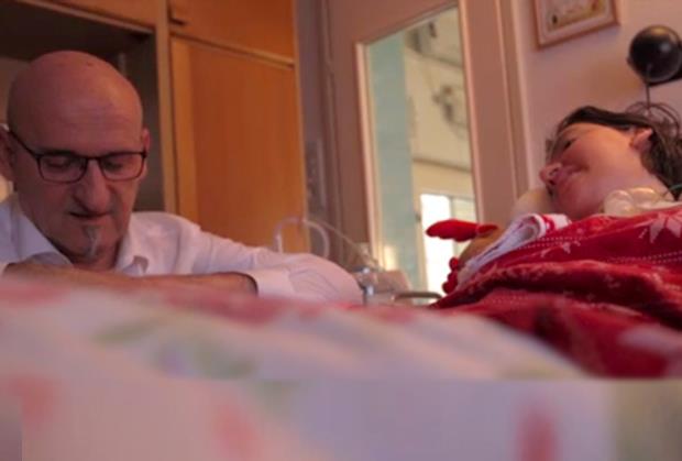 Ne može da govori, niti da se kreće. Zavisi od kiseonika, ima kanilu i stent u dušniku. Dok joj briše lice, Snježana joj umilnim glasom objašnjava da je u goste došao novinar.